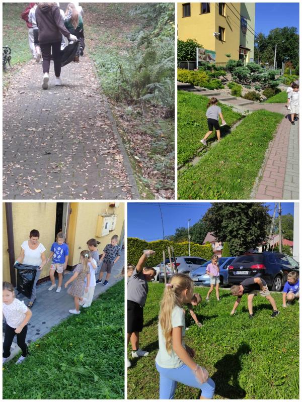 Uczniowie z zaangażowaniem porządkowali teren, zbierając odpady do przygotowanych worków. Dzięki wspólnemu wysiłkowi nasza okolica stała się piękniejsza i bardziej przyjazna dla środowiska.